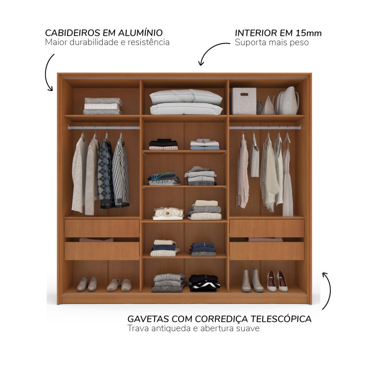 Con un diseño elegante e inteligente, ofrece un amplio espacio y organización para toda tu ropa y accesorios.