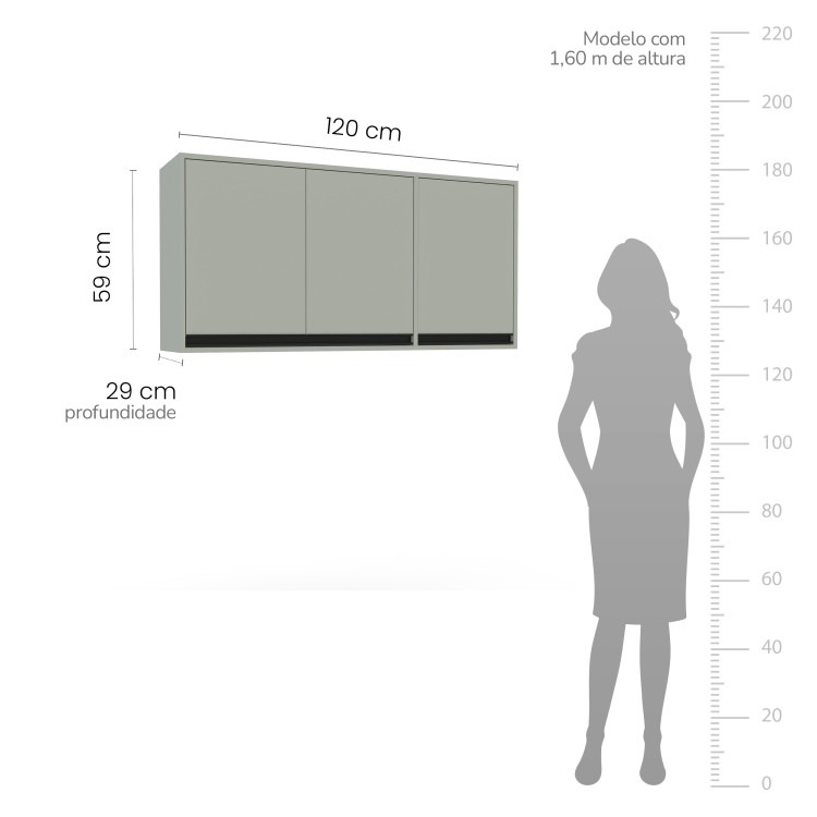 Módulo cocina KOYA REF: 006. Aéreo 3 puertas 120cm MDP 100% 15mm. Color Verde
