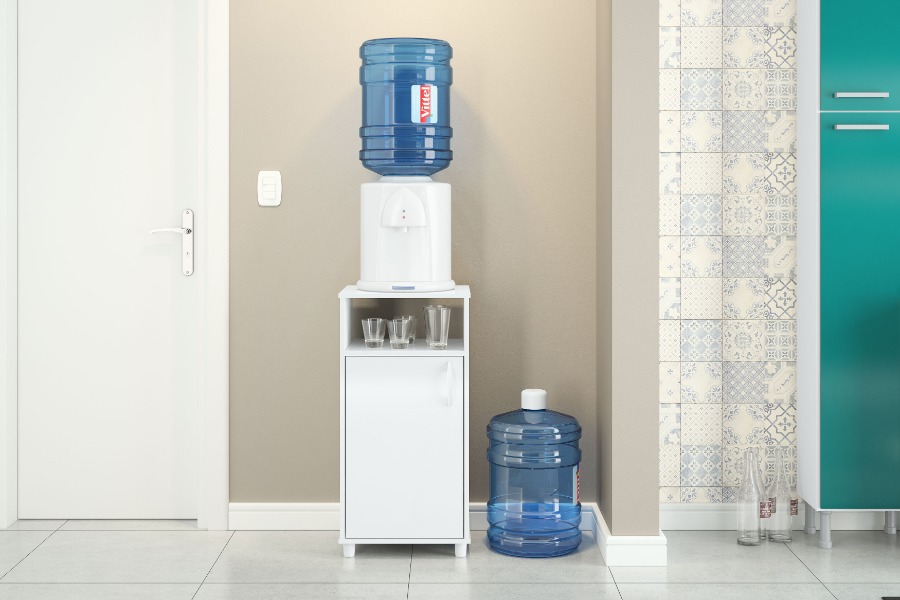 Y como el espacio suele ser limitado, este mueble cuenta con una puerta donde puedes guardar un garrafón de repuesto, evitando quedarte sin agua. ¡Muy práctico, verdad?
